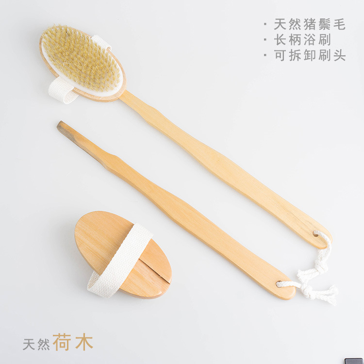 优质厂家荷木身体刷浴刷后背刷实木刷子长柄洗澡刷猪鬃软毛沐浴刷