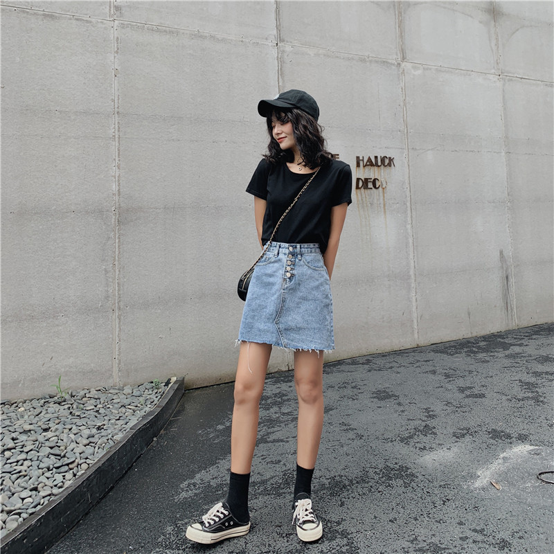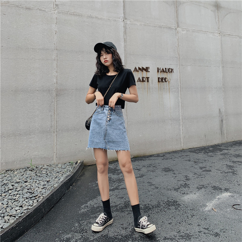 กระโปรง 半身裙秋冬天配毛衣女装2019新款高腰开叉中长裙网红针织包臀裙子