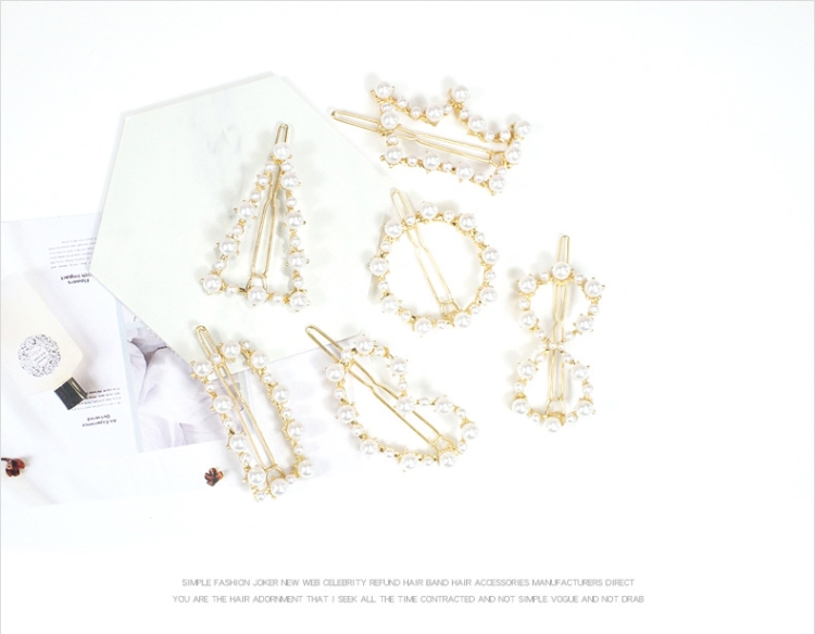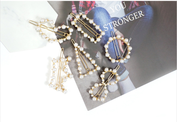 กิ๊บติดผม 新款珍珠发夹爱心三角夹少女网红可爱韩国头饰一字夹刘海儿童同款