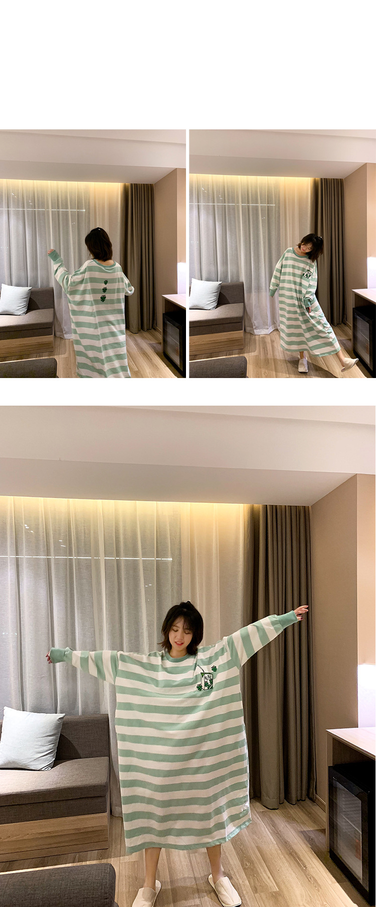 ชุดนอน  春秋季情侣睡衣长袖长裤卡通斑马情侣装加大码家居服两件套装