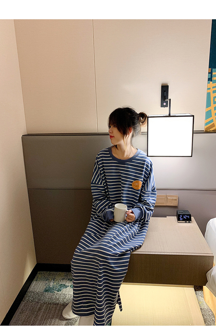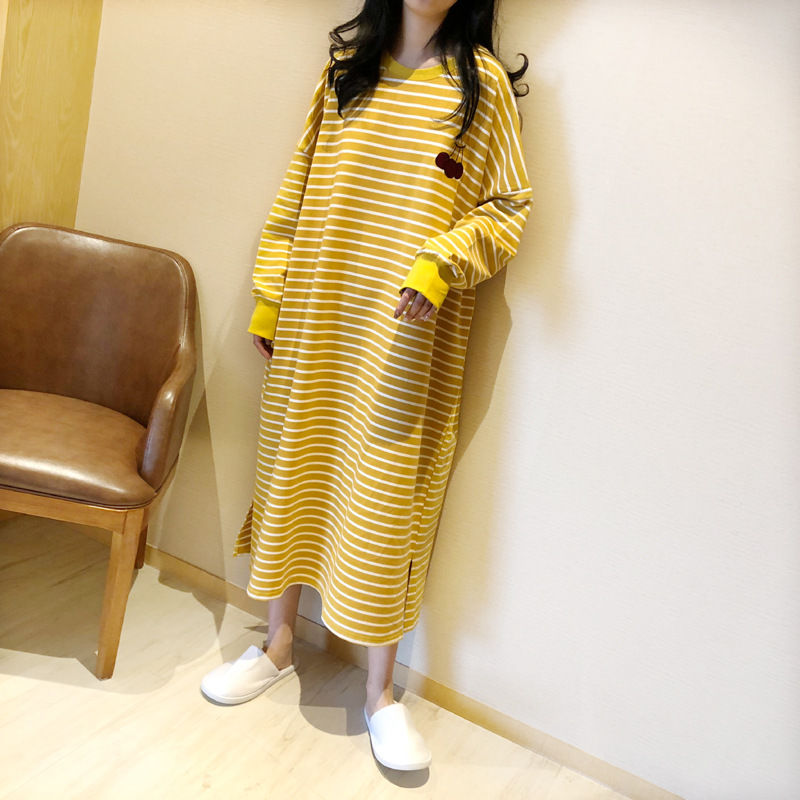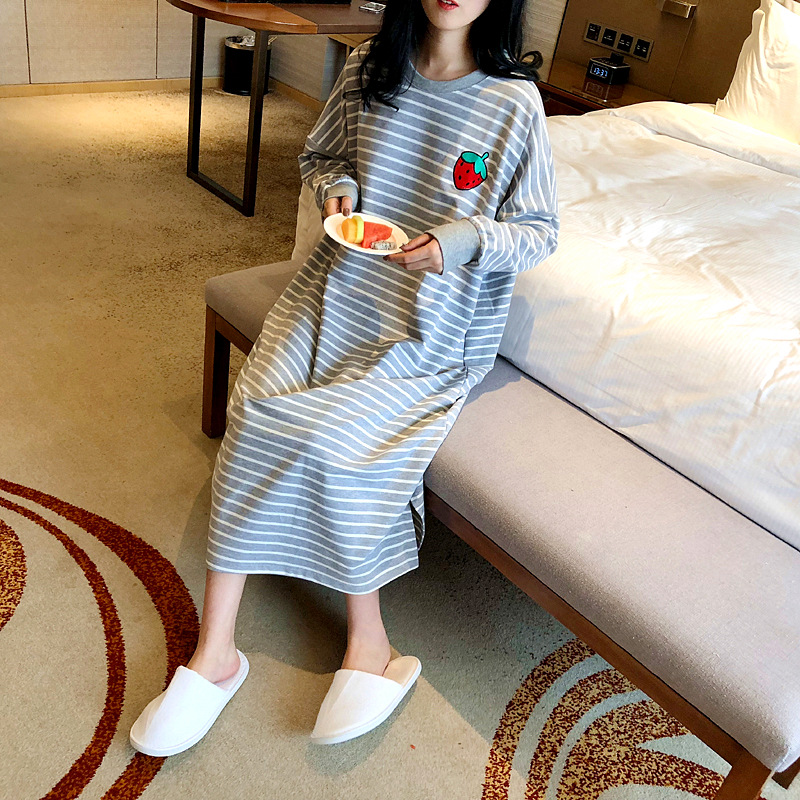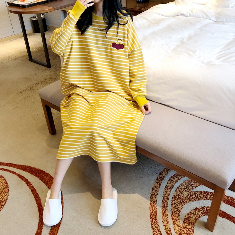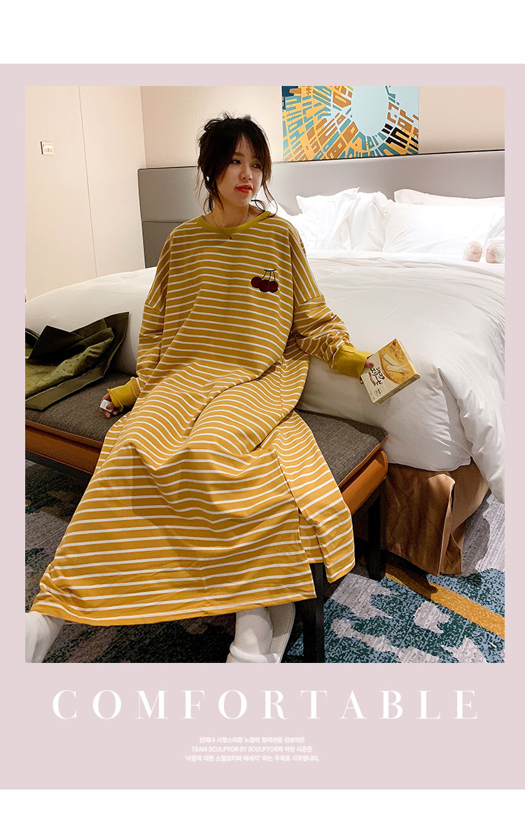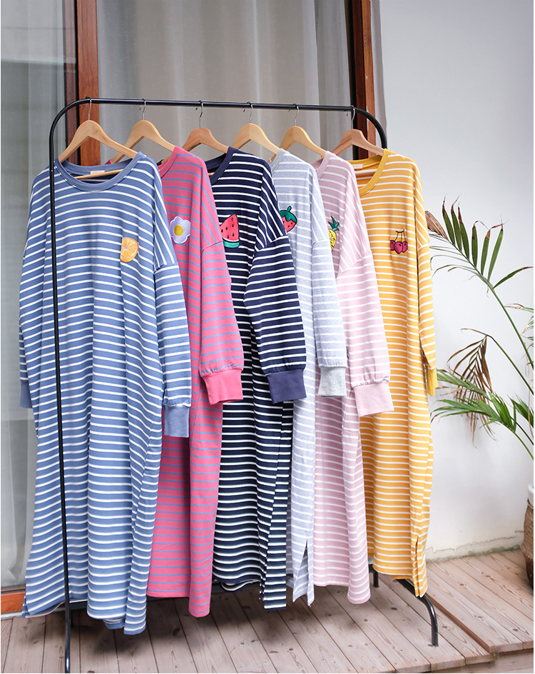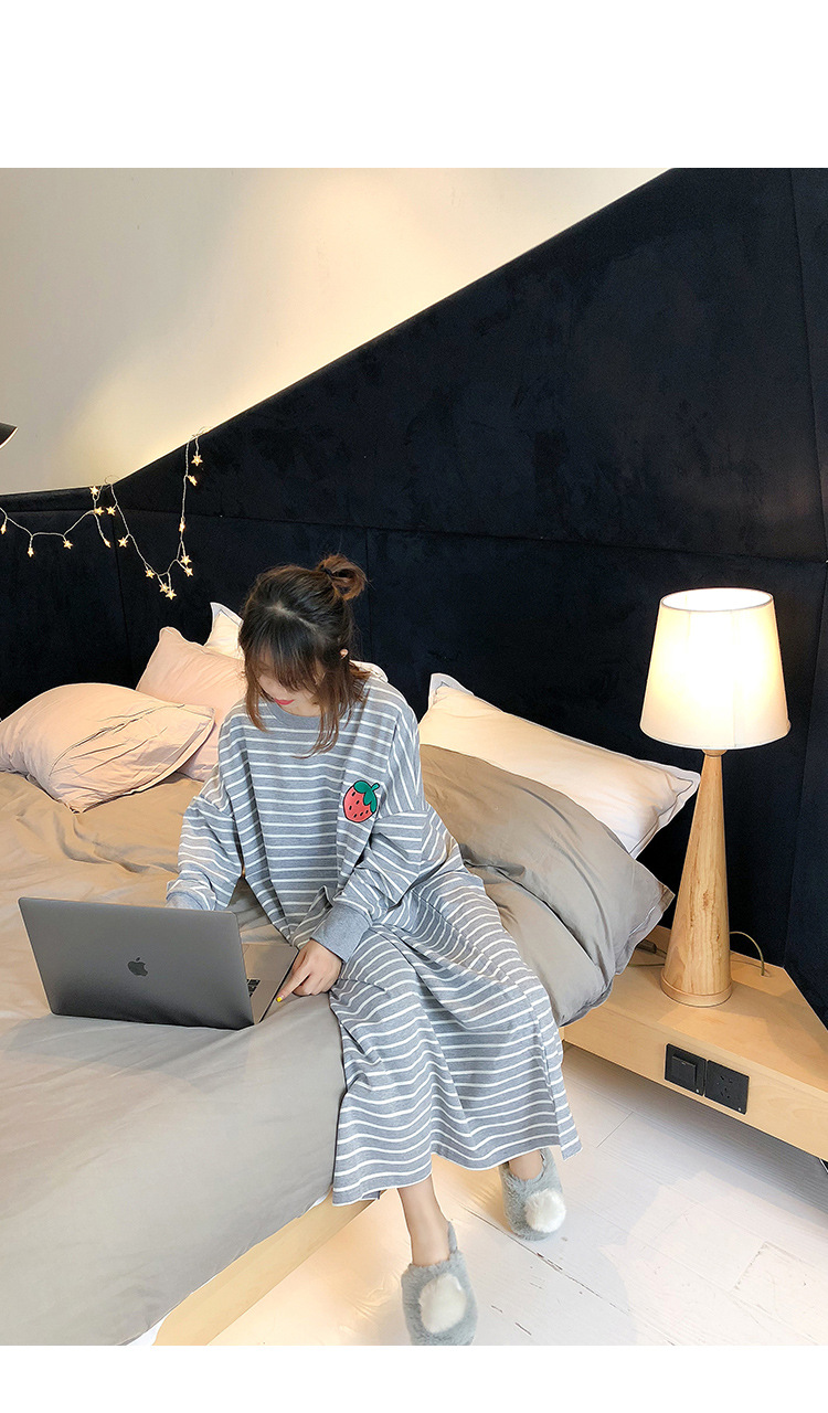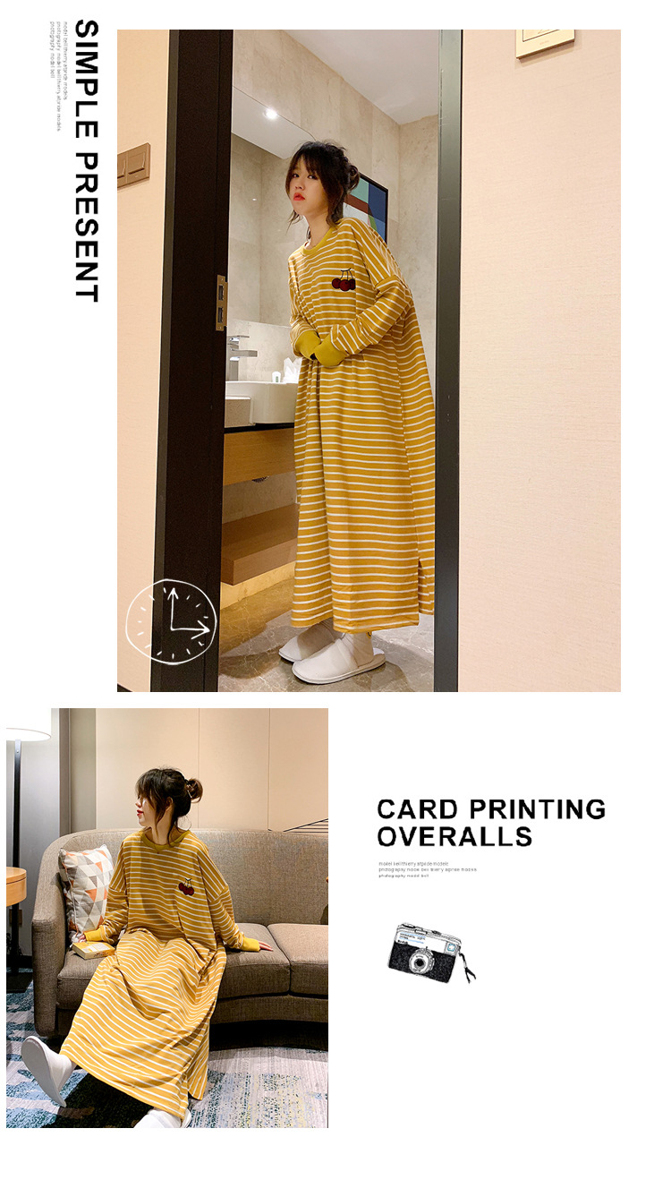 i2 XifKkz9SEOZoouDvmzTboGerkyOdskk9t春秋季睡裙女长袖插色薯条裙系列4个款少女学生大码宽松睡裙