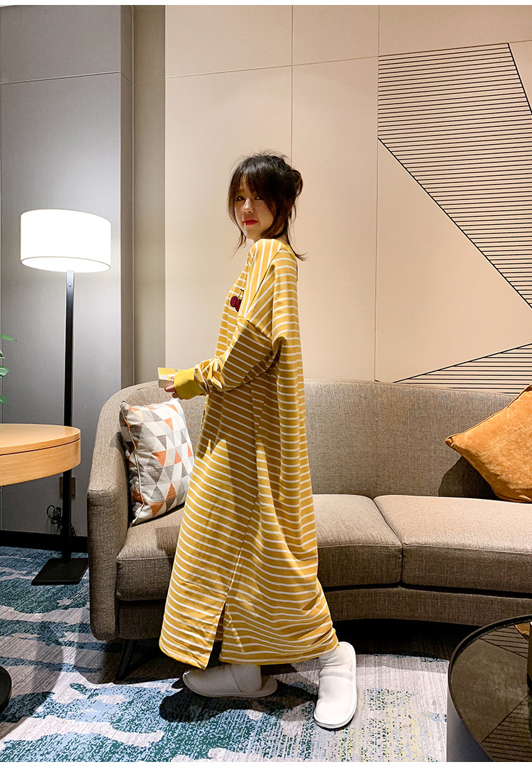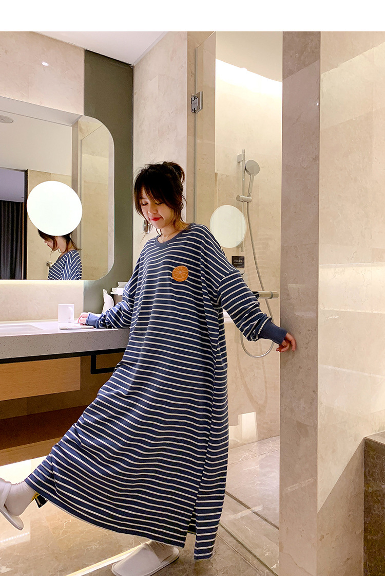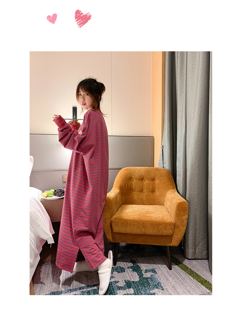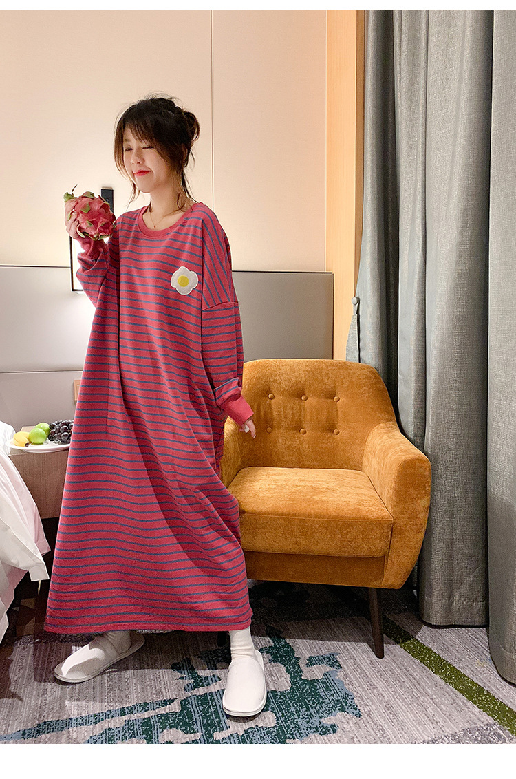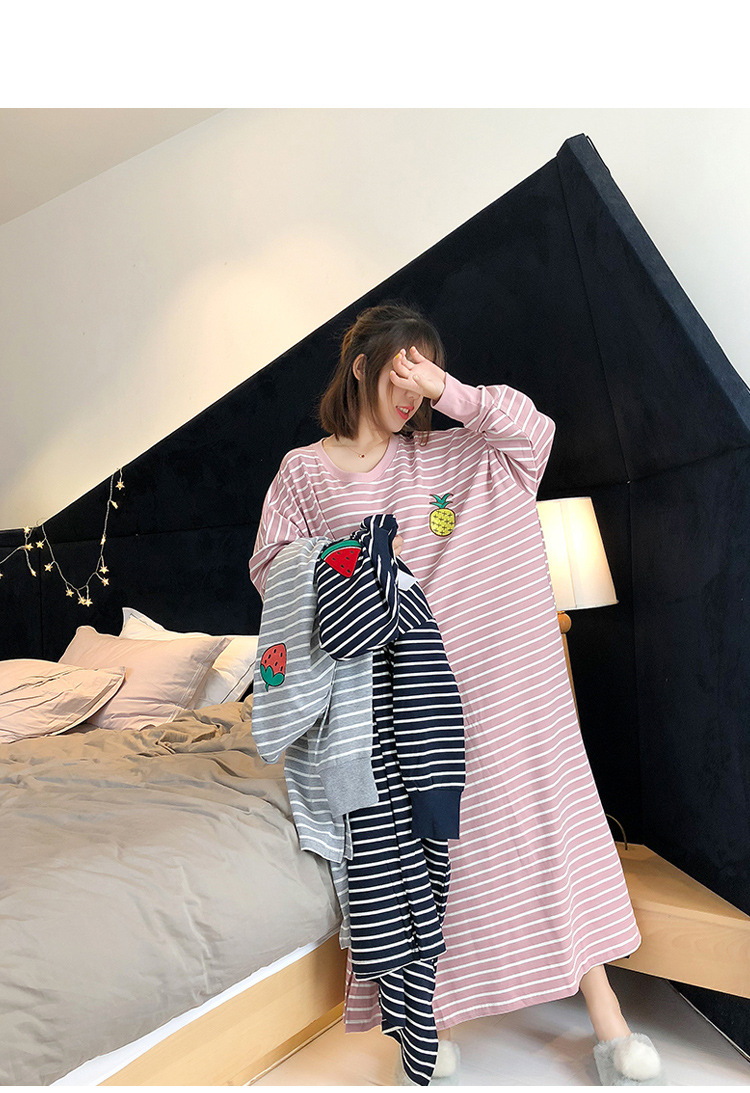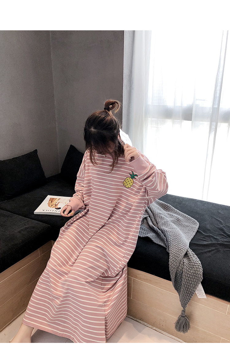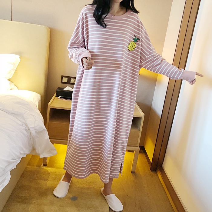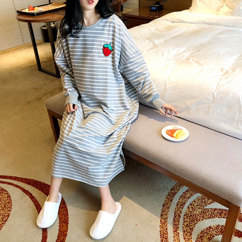 i2 XifKkz9SEOZoouDvmzTboGerkyOdskk9t春秋季睡裙女长袖插色薯条裙系列4个款少女学生大码宽松睡裙