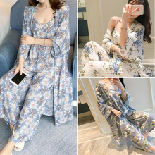 爆款日系清新甜美睡衣女吊带性感兰花茶花雏菊睡袍睡衣三件套家居