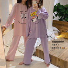 春秋季睡衣女长袖少女可爱粉大眼紫大眼时尚大码两件套装家居服