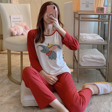 春秋季长袖插肩牛奶丝睡衣女卡通小象可外穿家运动套居服两件套装