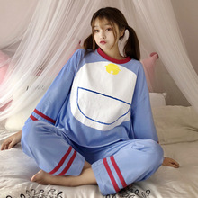 春秋季睡衣女长袖套装卡通大圆叮当大码宽松时尚学生少女两件套