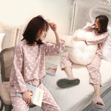 2018新款春秋季长袖韩版粉红女睡衣可爱波点时尚休闲家居服套装