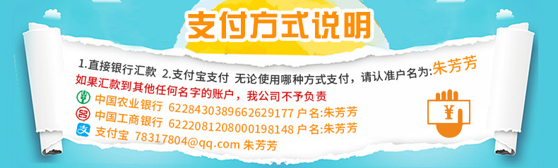 3.客户对产品颜色或款式的指定,我们会尽力满足,但不能都保证。如因颜色或款式不相符将不予以退换货。