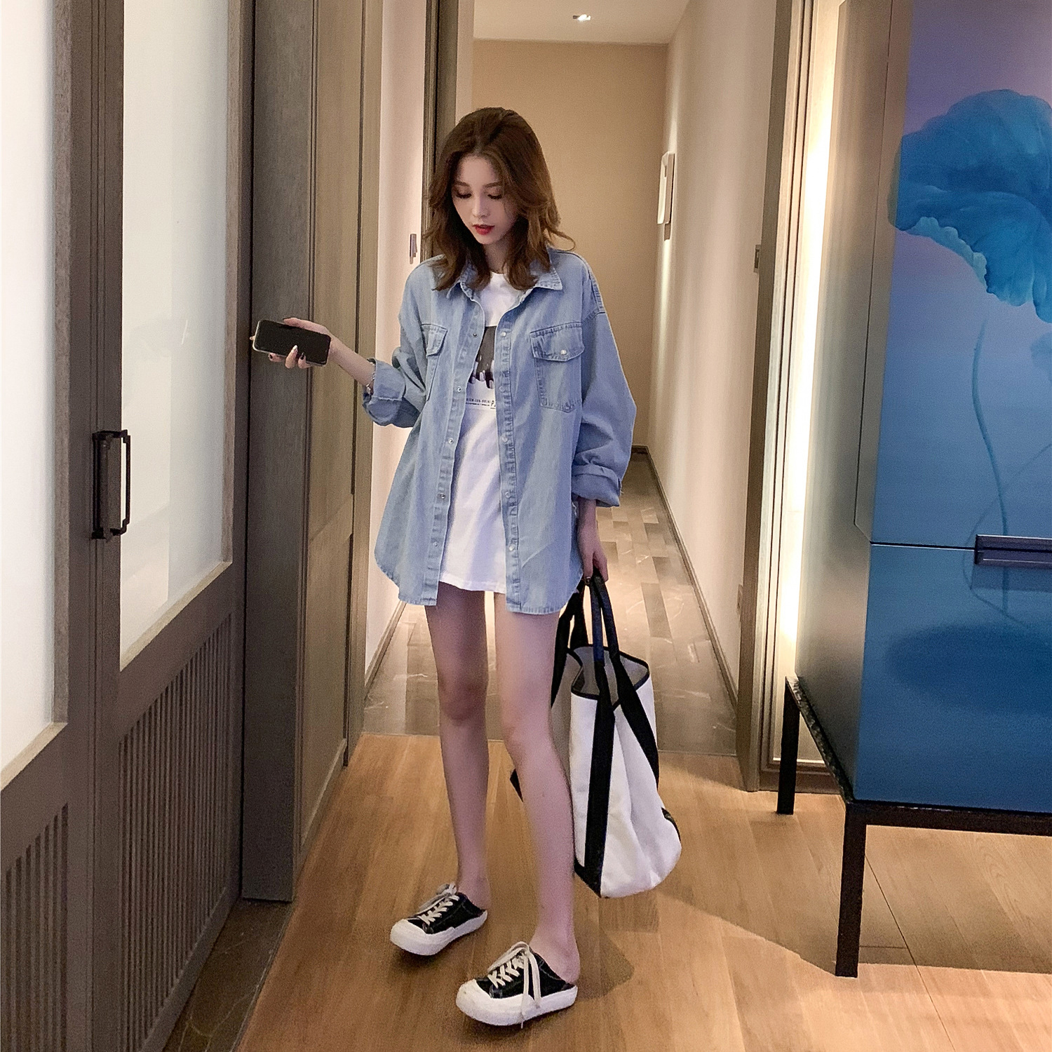 เดรส เสื้อยืด T恤连衣裙2020年夏季女气质修身显瘦流行潮流字母中长款不规则