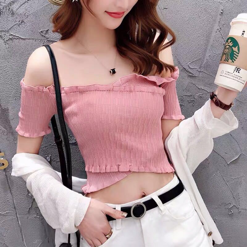 เสื้อยืด 五笔蟹 一件代发2019夏季韩版新款短袖T恤女纯色上衣服女装批发